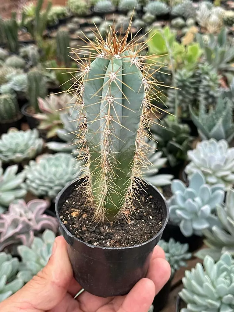 O Cacto Azul (Pilosocereus azureus) é uma espécie fascinante e exótica, conhecida por sua tonalidade azulada única e espinhos dourados contrastantes. De crescimento colunar e rápido, esse cacto pode atingir grandes alturas ao longo do tempo, tornando-se um destaque em qualquer coleção. Além da sua beleza ornamental, é resistente e de fácil cultivo, ideal para quem deseja um cacto imponente e de baixa manutenção.
