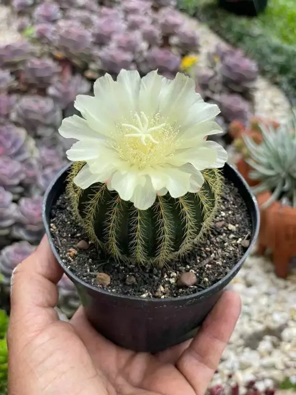 Substrato: Prefere solo bem drenado e rico em minerais. Use uma mistura para cactos com areia grossa, perlita ou pedra-pomes, garantindo boa aeração e evitando o acúmulo de umidade.